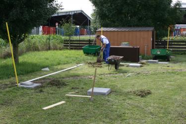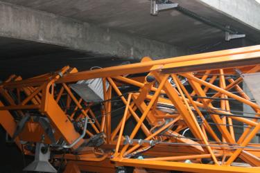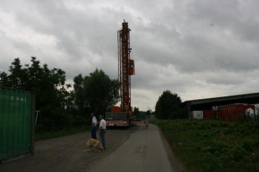 nochmal zurück...der Boden unter dem kran hat etwas nachgegeben...